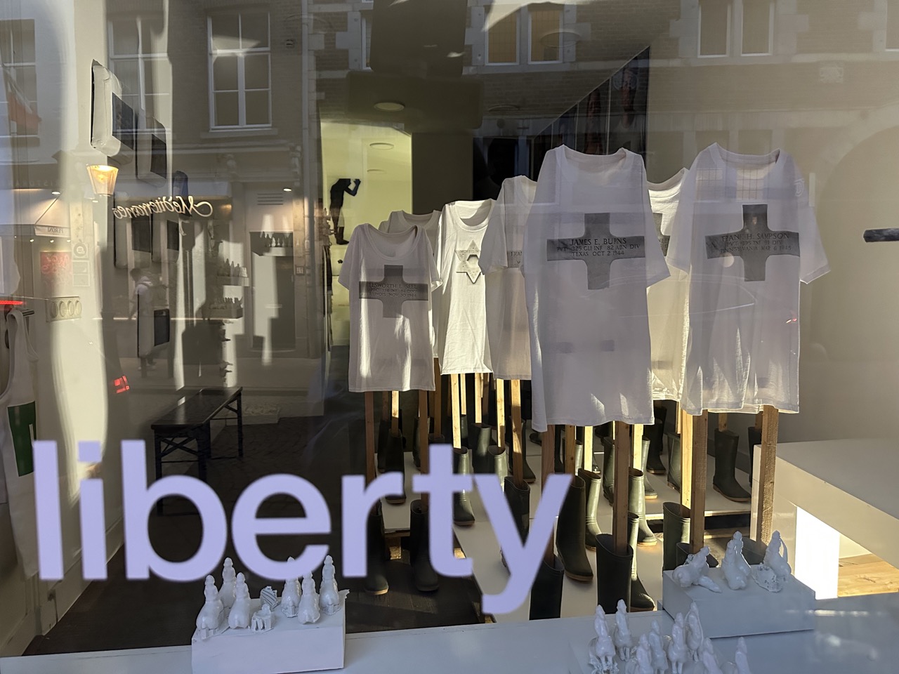 Statues of Liberty – 80 Years of Liberation is een indringende in- stallatie van Karin Smits, bestaande uit onder meer een fotoreeks en videopresentatie. In het werk dragen 215 jongeren een T-shirt met het graf van een Amerikaanse soldaat en 30 jongeren een T-shirt met het graf van een Britse soldaat, allen van hun eigen leeftijd en gesneuveld tijdens de Tweede Wereldoorlog. De ten- toonstelling verbindt verleden en heden en maakt de impact van vrijheid en verlies invoelbaar voor een jonge generatie. Het pro- ject kwam tot stand in samenwerking met het Vista College en werd gefinancierd door Karin Smits en het Vfonds.